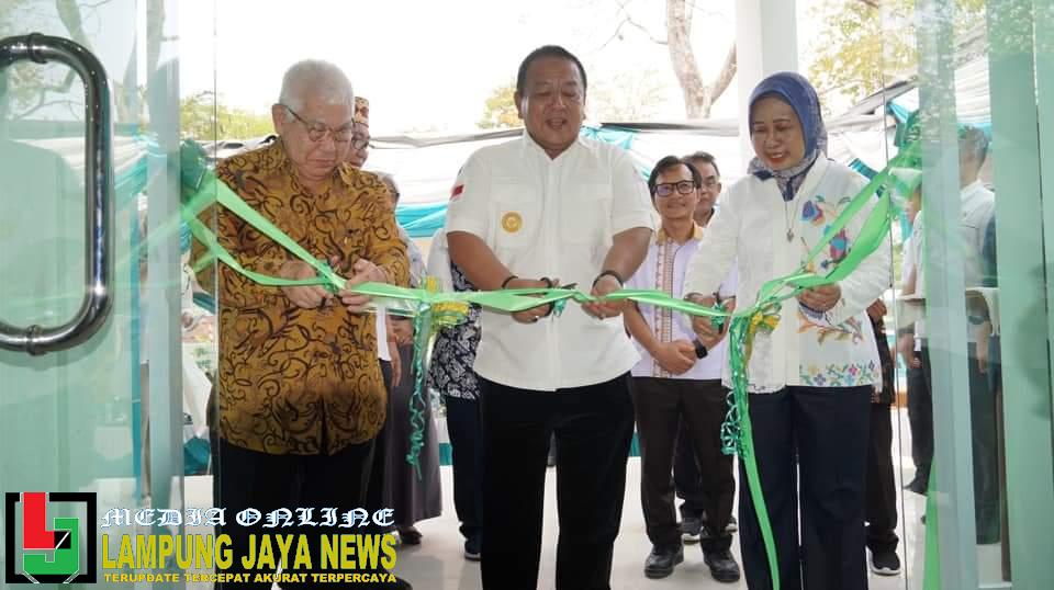 Gubernur Lampung Arinal Djunaidi meresmikan Gedung Pusat Kajian Cassava, Kelapa Sawit, Tebu, Kopi, Lada dan Kakao, hibah dari keluarga Winata (sungai budi group) kepada Fakultas Pertanian Universitas Lampung, Rabu (08/11/2023).