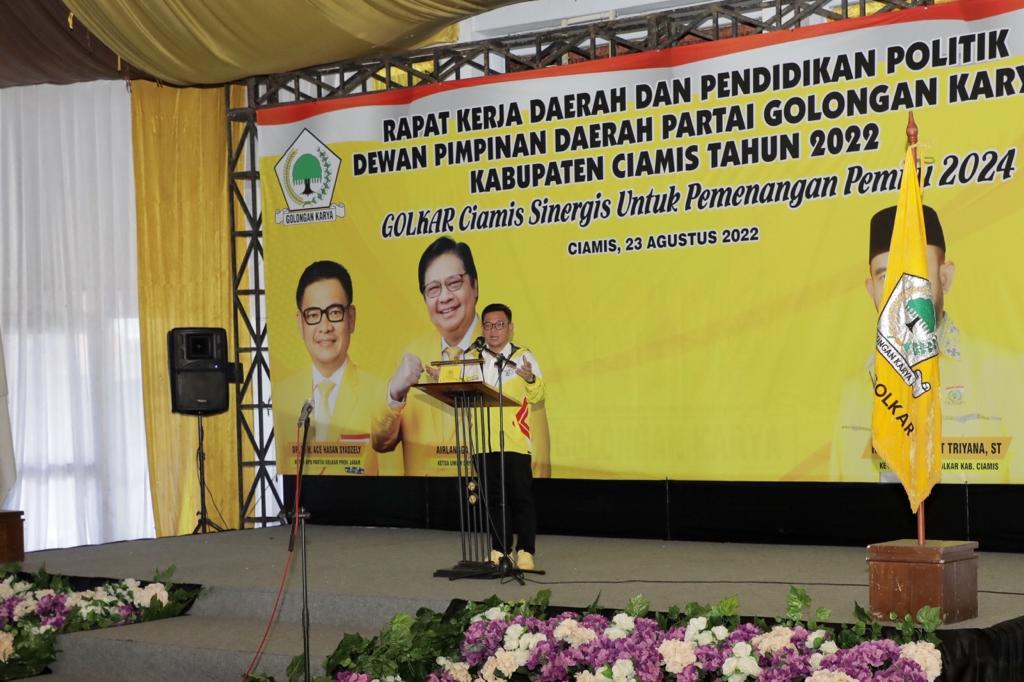 Dihadapan Bupati Ciamis, Dr. H. Herdiat Sunarya, M.M, Anggota Komisi XI DPR RI dari Fraksi Partai Golkar, Agun Gunandjar Sudarsa, kang Ace menegaskan, Partai Golkar lahir untuk memajukan bangsa. Keyakinan tersebut harus disampaikan kepada masyarakat melalui berbagai program dan upaya pendekatan bahwa bersama Golkar akan memperoleh kesejahteraannya.