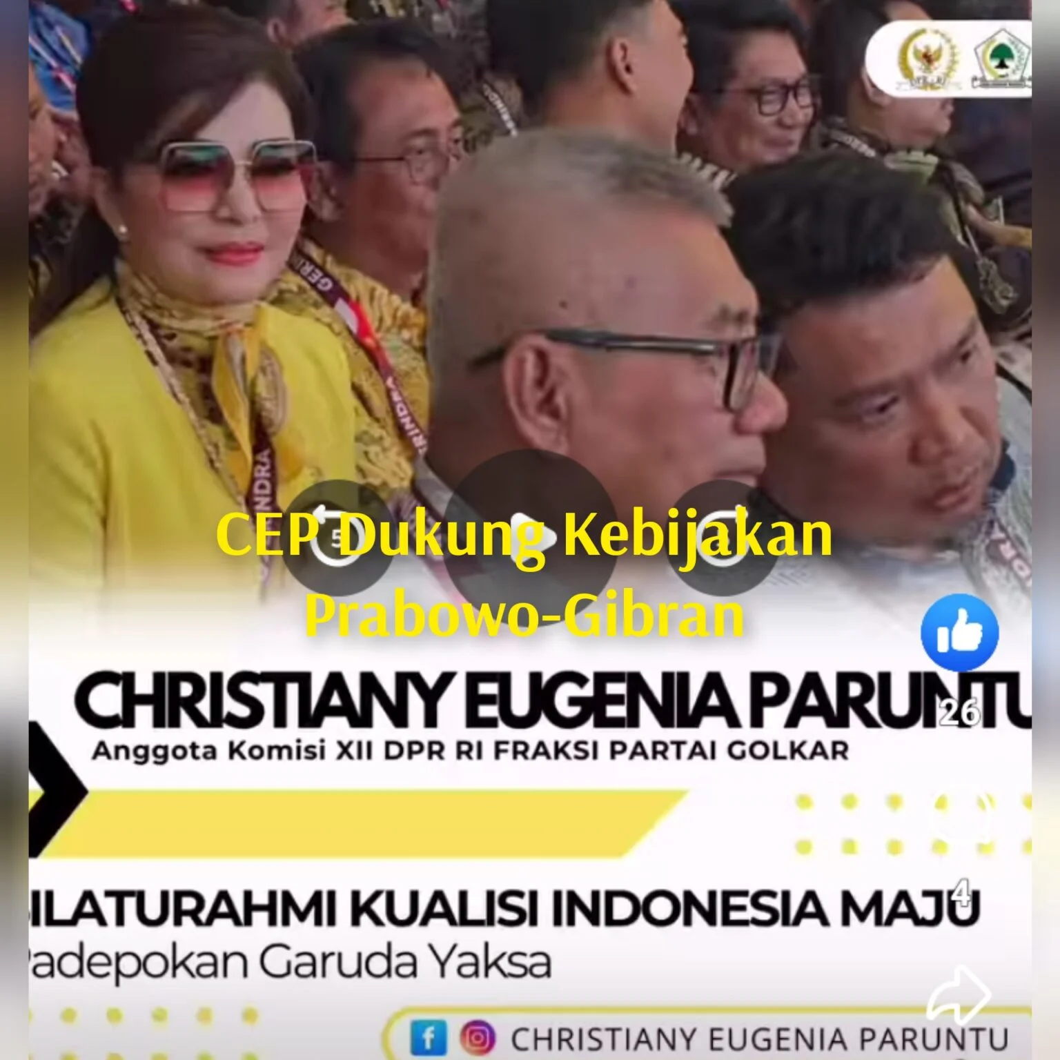 Sementara itu, Christiany Eugenia Paruntu (CEP) yang hadir mengikuti acara tersebut mengatakan bahwa ia sangat mendukung kebijakan penghematan anggaran dari presiden dan wakil presiden republik indonesia, Prabowo Subianto dan Gibran Rakabuming Raka.