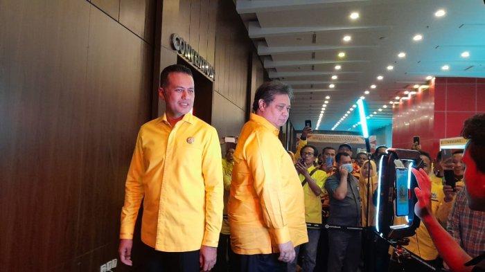 Ketua Umum DPP Partai Golkar Airlangga Hartarto diteriaki Presiden saat tiba di Hotel Santika, Jalan Kapten Maulana Lubis, Medan, Jumat (23/12/2022).