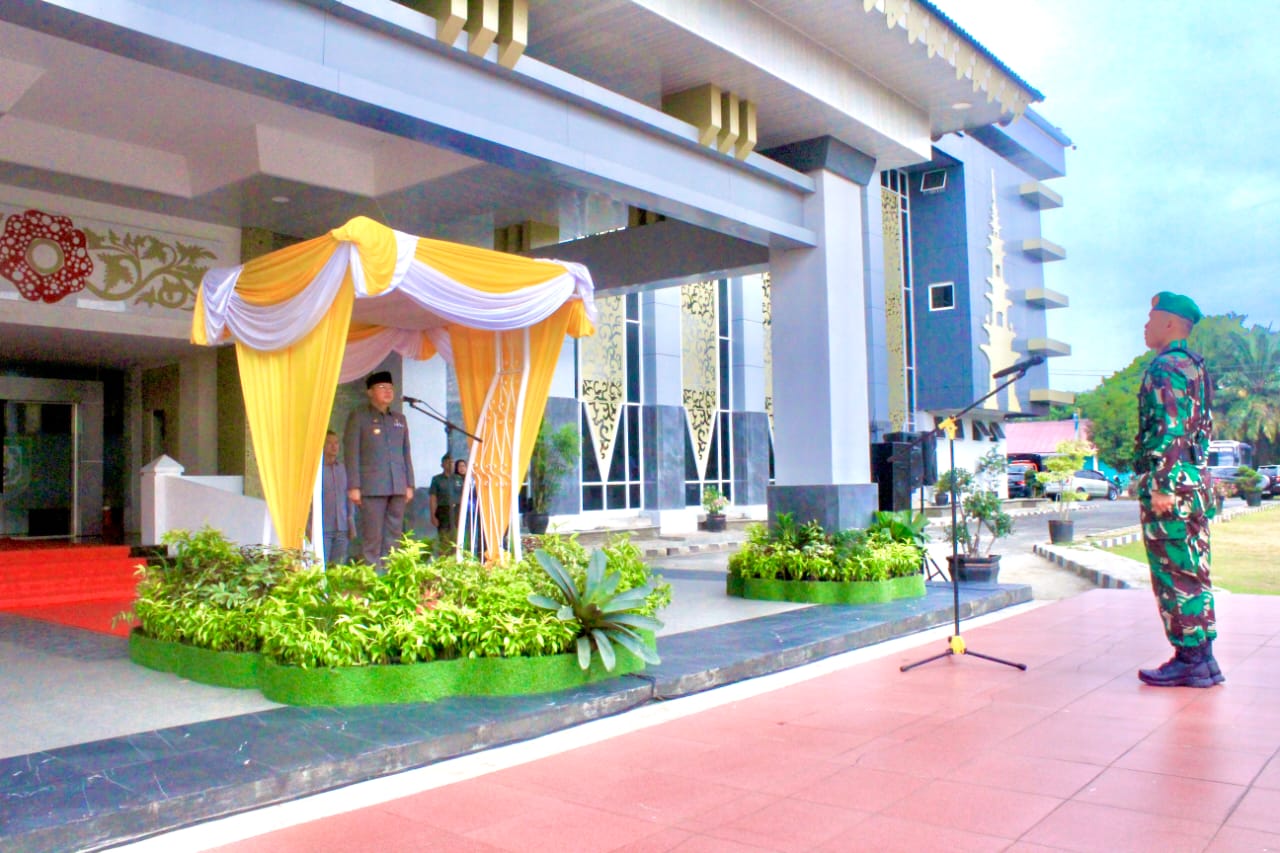 Gubernur Rohidin Mersyah memimpin upacara Hari Bela Negara ke-75 yang digelar di halaman Kantor Gubernur Bengkulu, Selasa (19/12).
