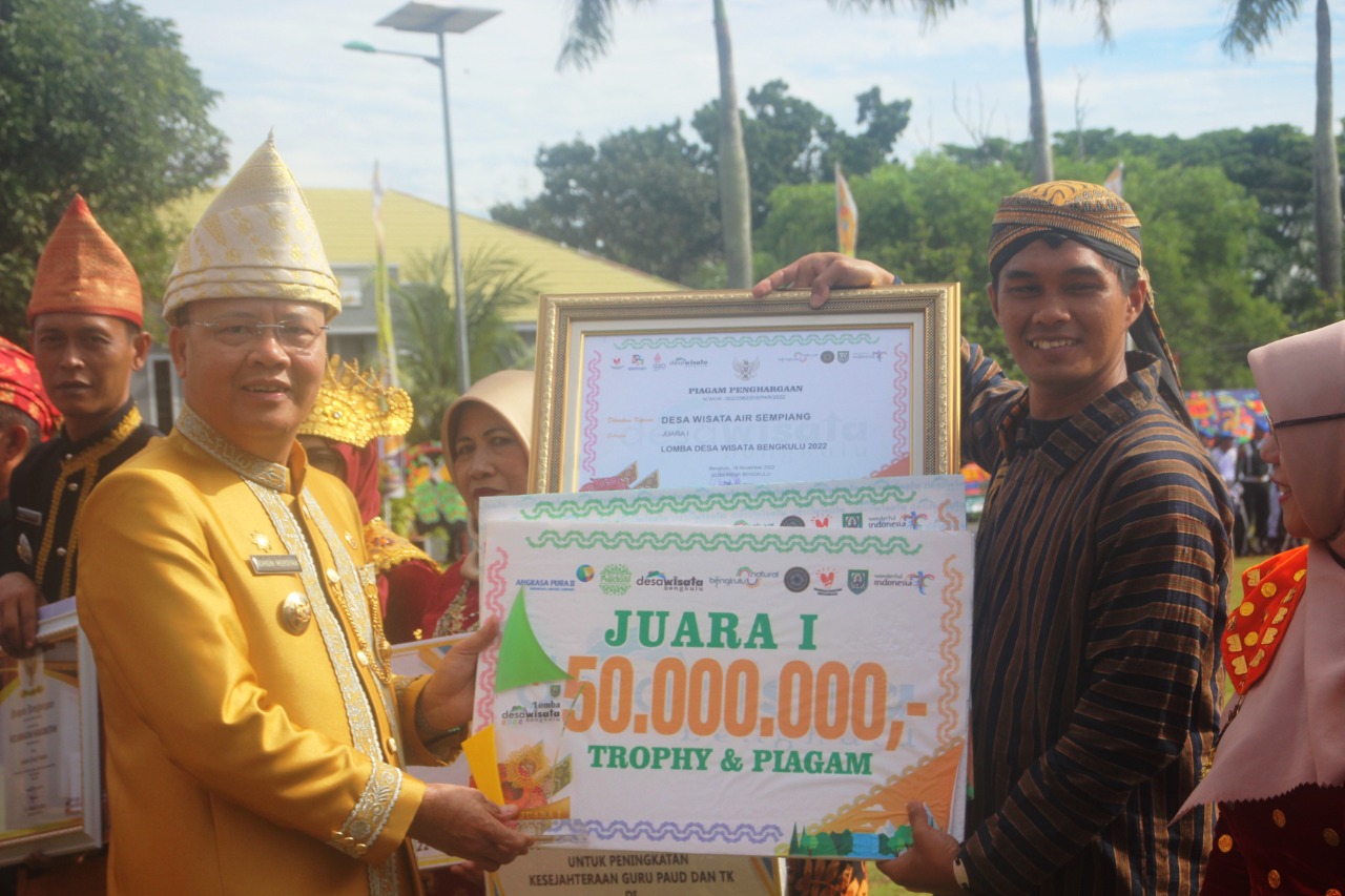 Dimoment ulang tahun provinsi Bengkulu ke 54 tahun, Gubernur Bengkulu Dr. Rohidin Mersyah, MMA memberikan penghargaan kepada pemenang desa wisata tahun 2022.
