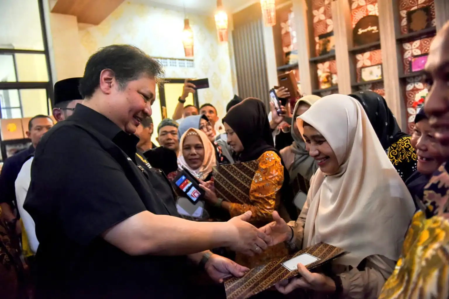 Dalam kunjungan tersebut, Airlangga menyalurkan Kredit Usaha Rakyat (KUR) seca asimbolis kepada beberapa debitur.