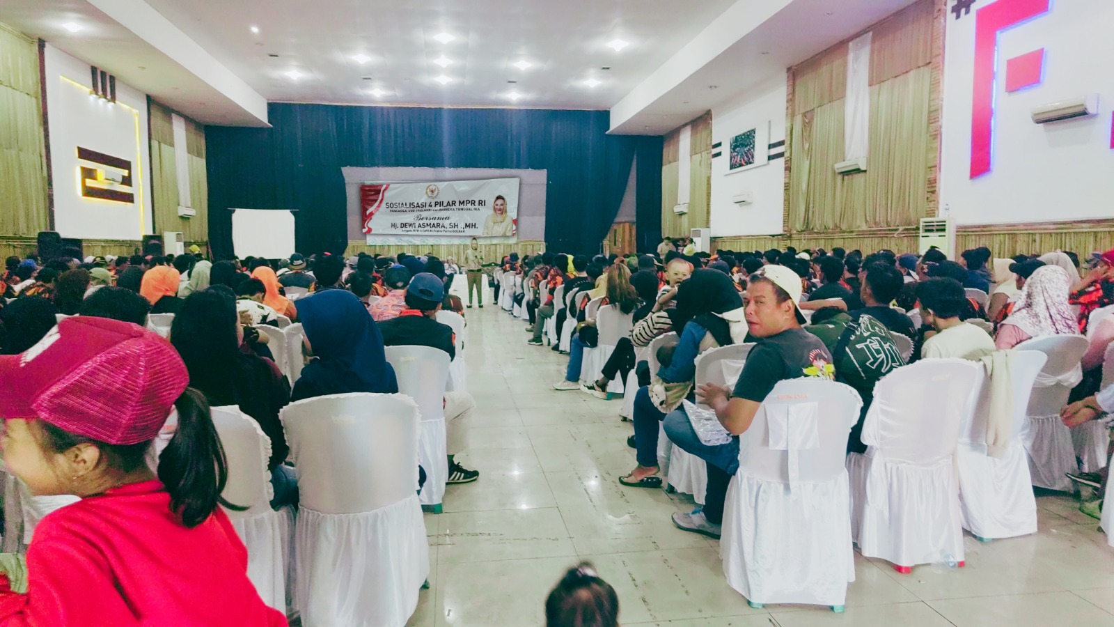 Demikian disampaikan Anggota DPR/MPR RI Dewi Asmara saat acara Sosialisasi 4 Pilar Kebangsaan yang diselenggarakan di Gedung Serbaguna Prinanda Jl. Jend. Ahmad Yani, Pelabuhanratu, Kec. Pelabuhanratu, Kabupaten Sukabumi, Jawa Barat tanggal 28 November 2024.