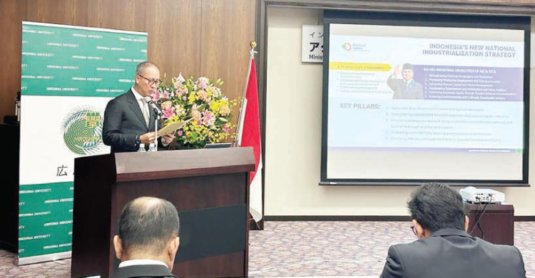 Menteri Perindustrian (Menperin) Agus Gumiwang Kartasasmita memberikan kuliah umum di Universitas Hiroshima, Jepang, Senin (14/7/2025). Dalam kesempatan ini, Menperin mengenalkan Strategi Baru Industrialisasi Nasional (SBIN). Dengan strategi ini, industri Indonesia siap take off alias lepas landas.