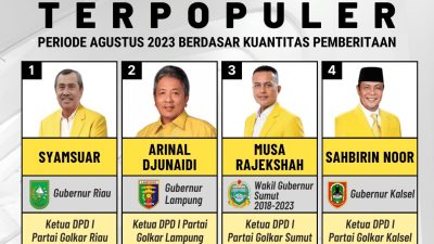 Nama Gubernur Riau, Syamsuar yang juga Ketua DPD I Partai Golkar Riau berdasar hasil riset…