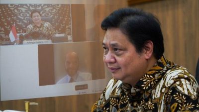 Menko Perekonomian RI Airlangga Hartarto menemui Perdana Menteri Singapura Lew Hsien Loong di The Istana,…