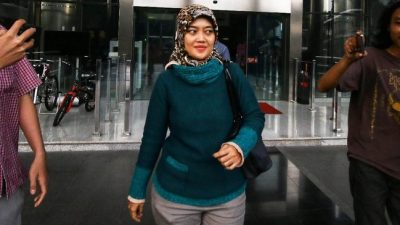Wakil Gubernur Lampung Chusnunia Chalim menyerahkan surat pengunduran diri sebagai wakil kepala daerah karena mencalonkan…
