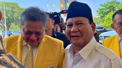 Bakal calon presiden Koalisi Indonesia Maju (KIM) Prabowo Subianto menyambangi Kantor DPP Partai Golkar di…