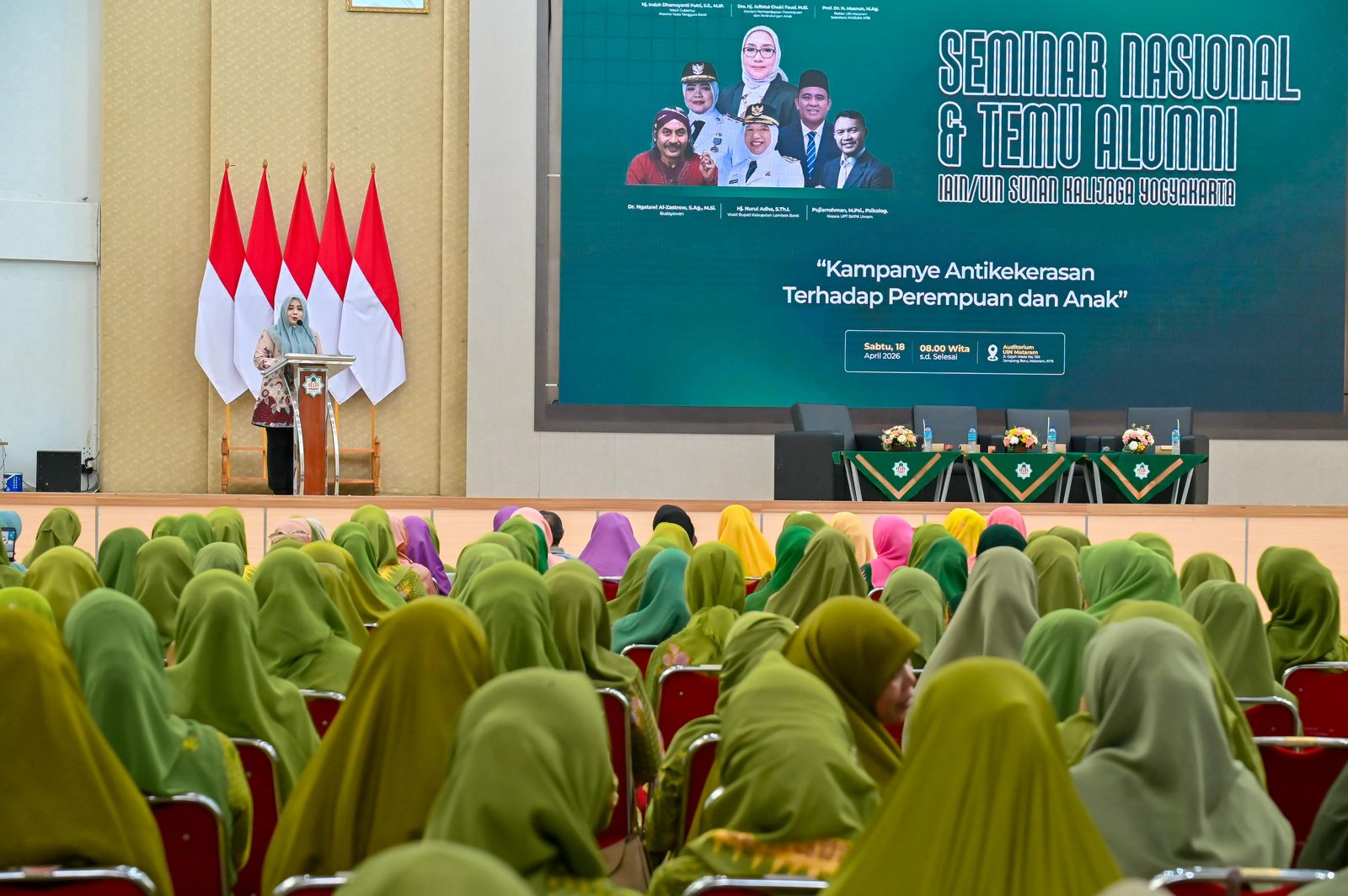 Wakil Gubernur Nusa Tenggara Barat (Wagub NTB), Indah Dhamayanti Putri, mendampingi Menteri Pemberdayaan Perempuan dan Perlindungan Anak (PPPA) RI, Arifah Fauzi, dalam Seminar Nasional Kampanye Anti Kekerasan Seksual terhadap Perempuan dan Anak yang digelar di UIN Mataram, Sabtu (18/4).