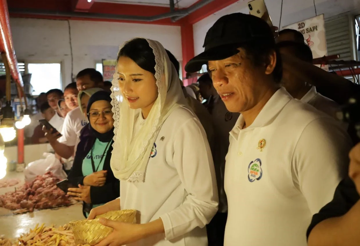 Wakil menteri Perdagangan RI Dyah Roro Esti Widya Putri melakukan kujungan ke Pasar Atas Baru Kota Cimahi untuk mengecek langsung ketersediaan bahan pokok pada Sabtu (22/2/25).