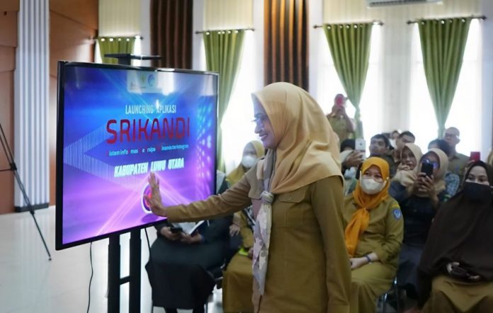 Bupati Luwu Utara, Indah Putri Indriani melaunching aplikasi Srikandi di Aula Lagaligo Kantor Bupati Luwu Utara, Senin (12/12/22).